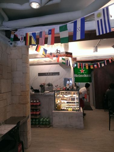 店內有非常多異國國旗,掛在天花板上當裝飾